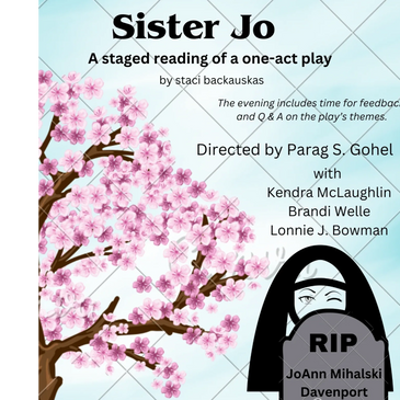 These two plays will be performed as a staged reading with a run time of approximately 40 minutes, plus a talk back/Q & A with the playwright and director.